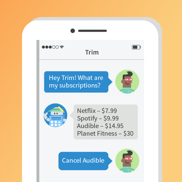 After it receives a cancel request, Trim will contact the company for you and get the subscription cancelled. They’ll start by sending an email with your text authorization.